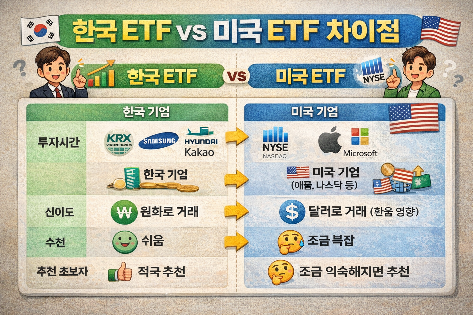 미국형 ETF vs 한국형 ETF (초보자용 비교)